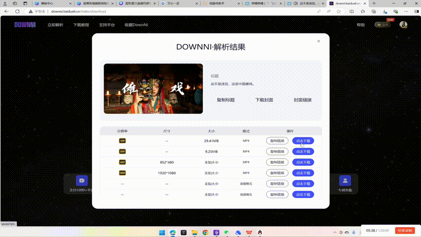 支持国内外1000+常见的视频流媒体,视频网站视频下载,短视频搬运必备,支持下载视频封面、标题等内容